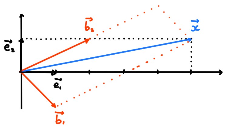 qui signifie \(\boldsymbol{x}=\boldsymbol{b}_1+2\boldsymbol{b}_2\).