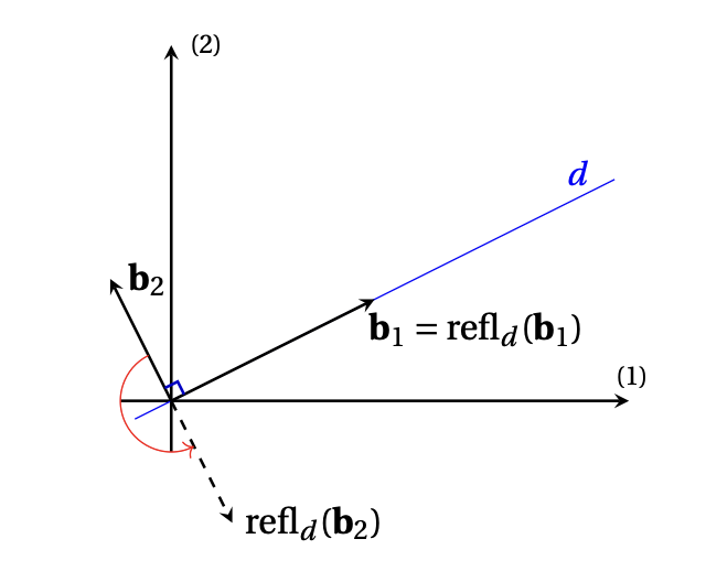 \mathrm{refl}_d(\boldsymbol{b}_1)=\boldsymbol{b}_1\,,\qquad