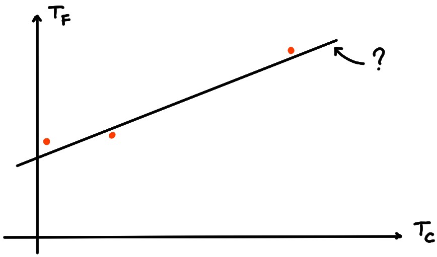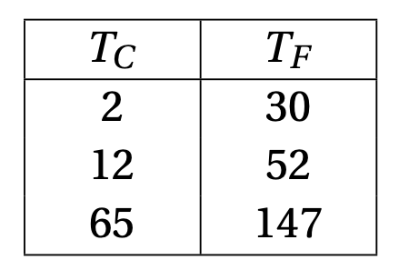 \[(t):\qquad T_F=\alpha T_C+\beta\,, \]