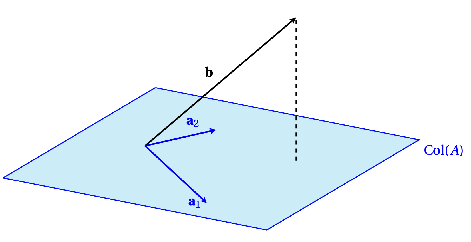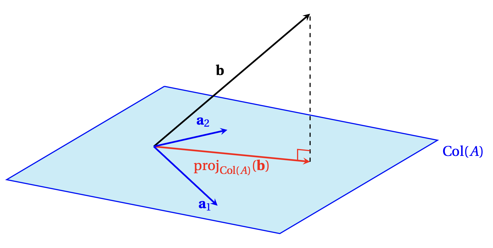 définition, la projection \(\mathrm{proj}_{\mathrm{Col}(A)}(\boldsymbol{b})\in \mathrm{Col}(A)\).