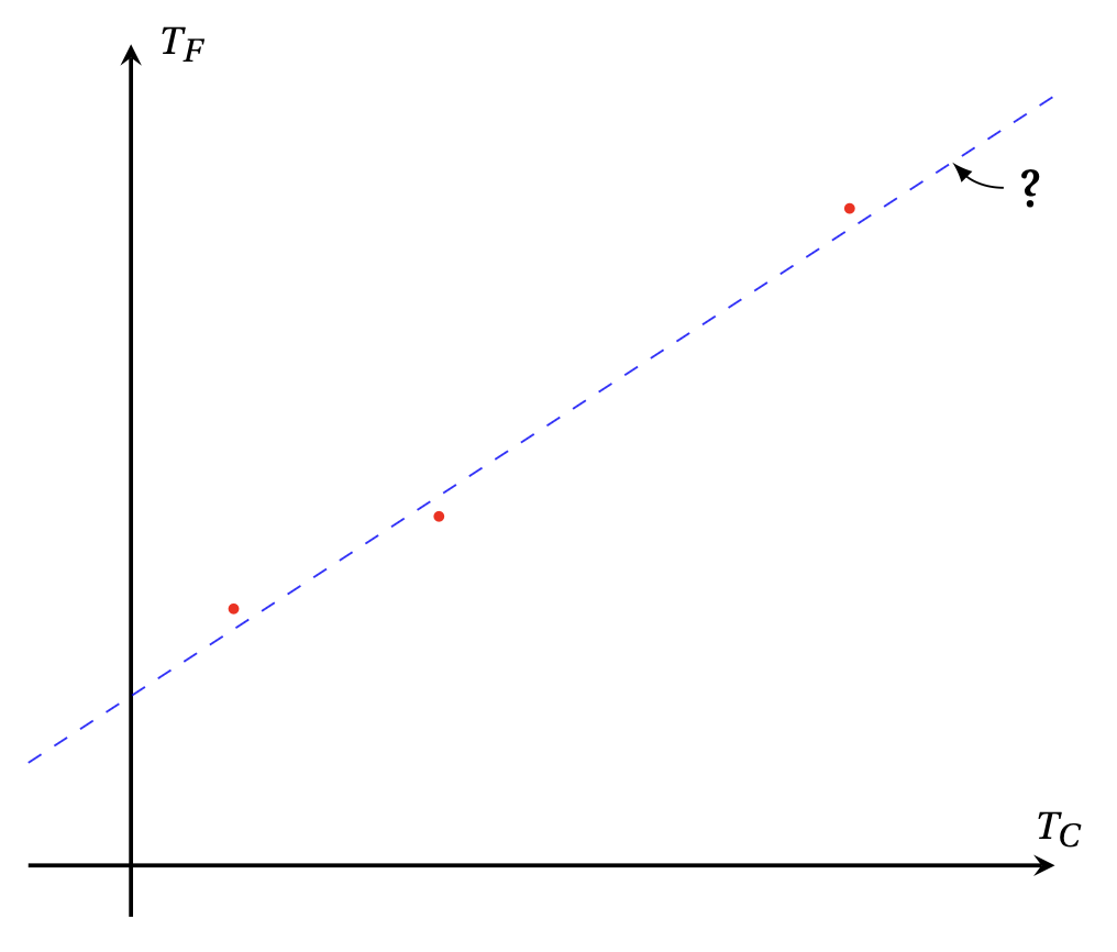 comme suit: les trois paires \((T_C,T_F)\) mesurées en laboratoire peuvent être