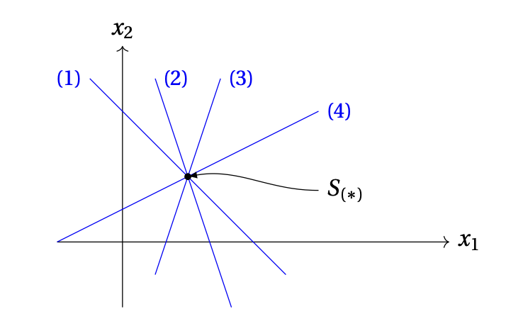 \((x_1,x_2)\) appartient en même temps à chacune des \(m\) droites spécifiées
