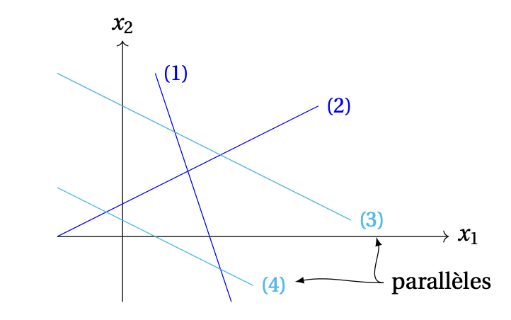signifie que le point de coordonnées \((x_1,x_2)\) est sur une droite.