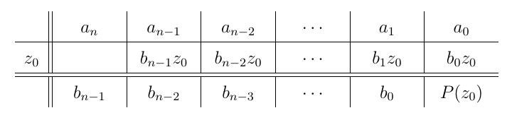 b_{n-2} &=& a_{n-1} + b_{n-1}z_0 \\