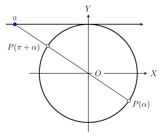 - On cherche un angle \(\alpha\) tel que \(\tan(\alpha)=a\) (par exemple parmi les valeurs remarquables).