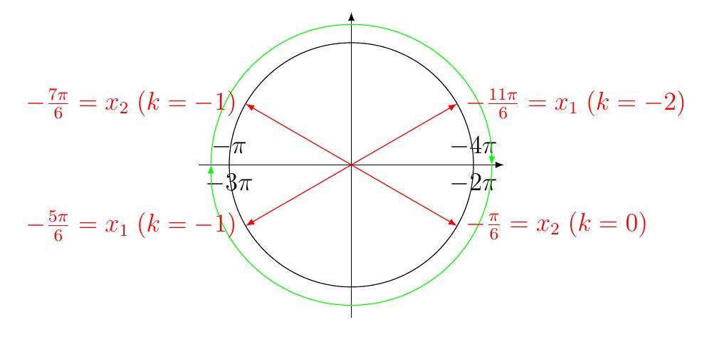 entre \(-2\pi\) et \(0\). On rappelle les solutions