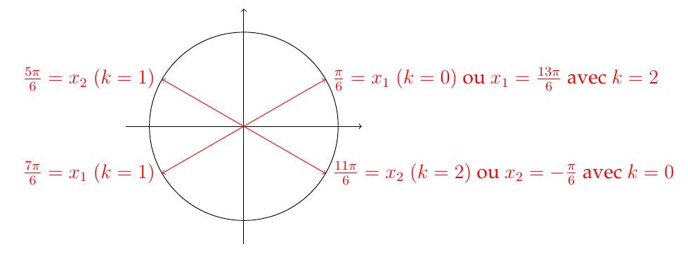 exemple \(\alpha=\frac{\pi}{6}\). On doit donc résoudre
