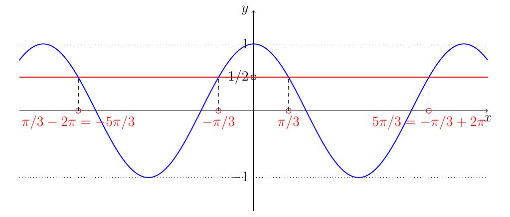 Cette fois, on ne garde que les angles compris dans l'intervalle \(\displaystyle