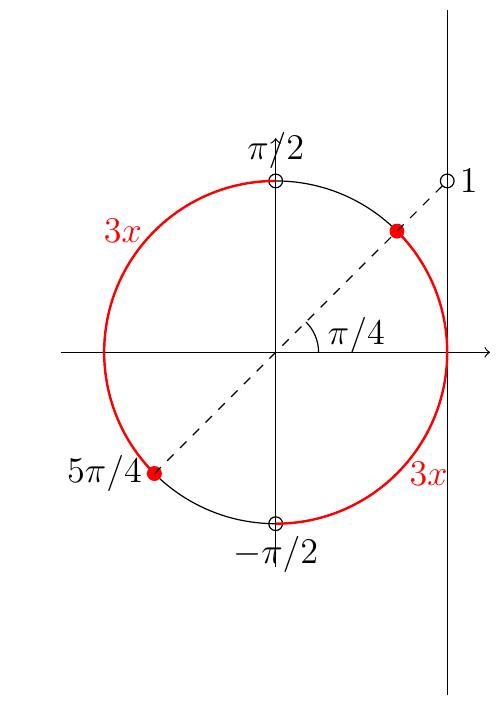 - Résoudre pour \(x\in \mathbb{R}\) : \(\tan(3x)\leqslant 1\). Considérons encore une