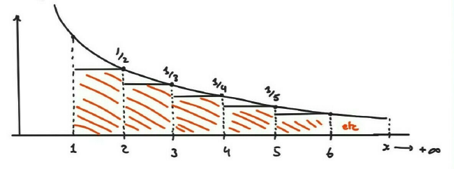 \(1\), situés sous le graphe de \(f(t)=\frac{1}{t}\):