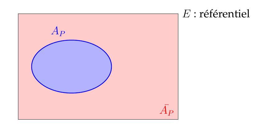 Soit \(P\) une propriété définie sur un référentiel \(E\) et \(A_P\) son ensemble associé correspondant.