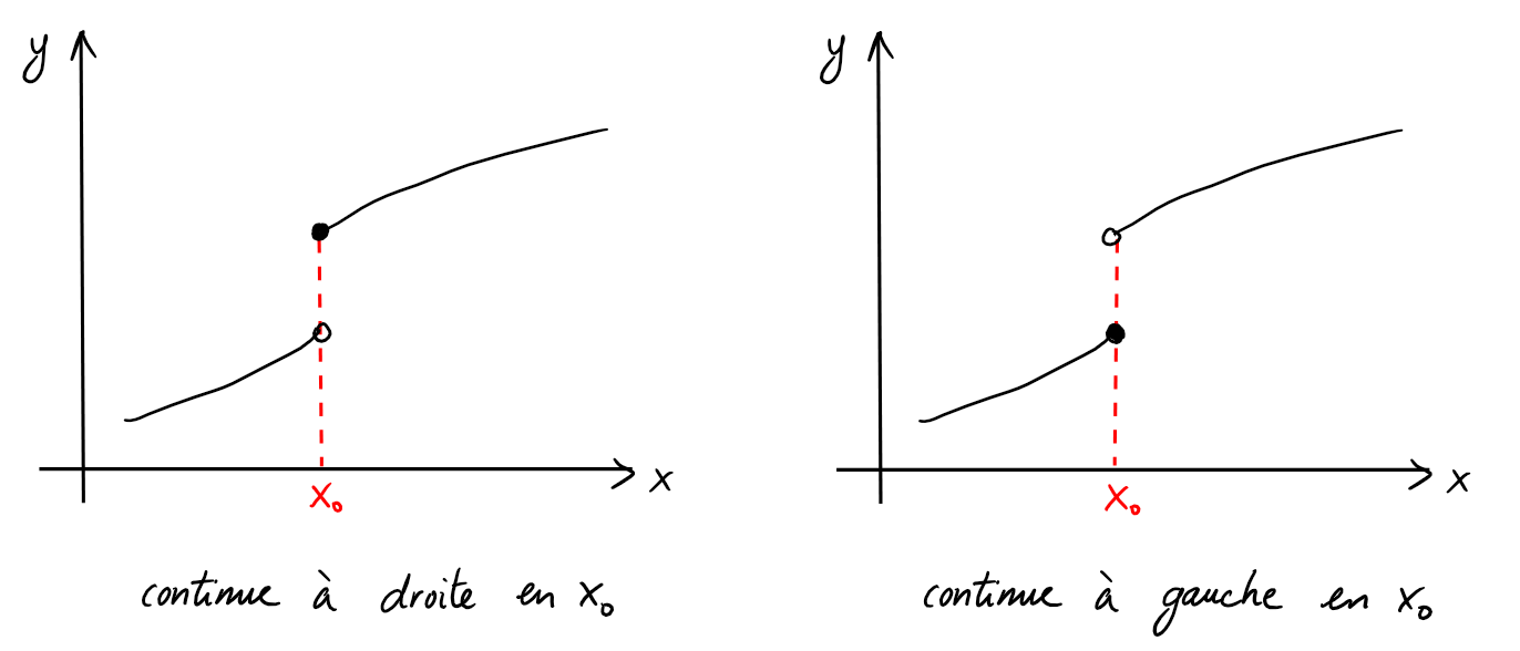 - Si \(\lim_{x\rightarrow x_0^+}f(x)=f(x_0)\), la fonction \(f\) est dite