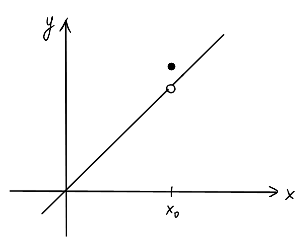 \(f(x_0)\neq \lim_{x\rightarrow x_0} f(x)\).