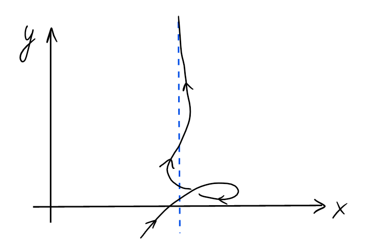 Cette région sera soit au voisinage d'un point, soit lorsque \(t\to\pm \infty\)