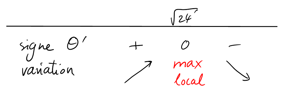 Ainsi, \(\theta'(x)=0 \iff x=\sqrt{24}\), et