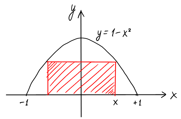 Trouver le rectangle inscrit entre la courbe \(y=1-x^2\) et l'axe \(Ox\) d'aire