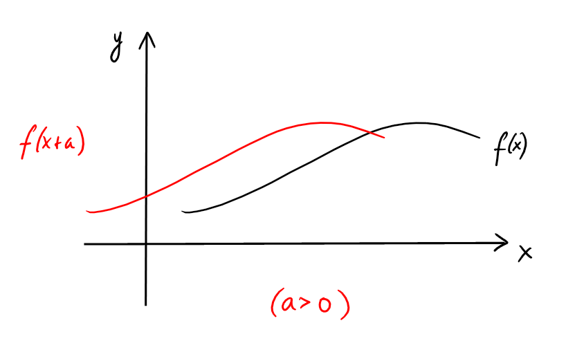 Si \(g(x)=x+a\), \((f\circ g)(x)=f(g(x))=f(x+a)\), et le graphe de