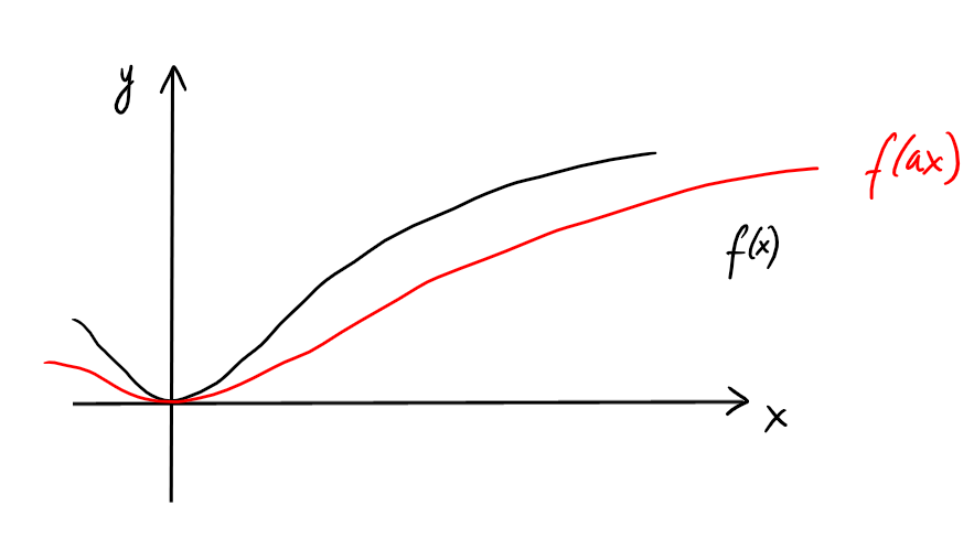 Si \(g(x)=ax\), \((f\circ g)(x)=f(g(x))=f(ax)\), et le graphe de \(f\circ g\)