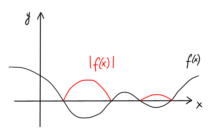 toute partie négative de la fonction est reflétée à travers l'axe \(Ox\):