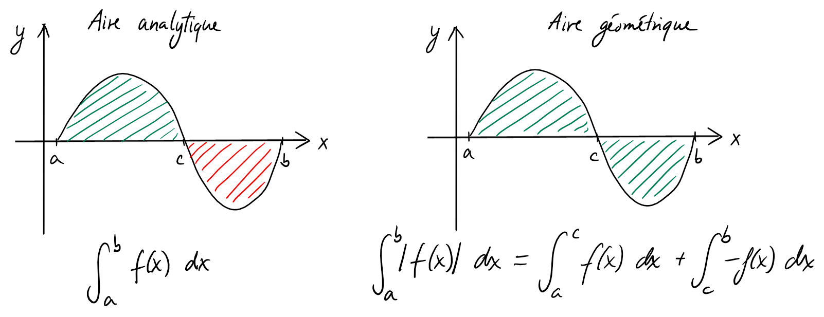 L'aire géométrique est donnée par \(\int_a^b |f(x)| \ dx\).