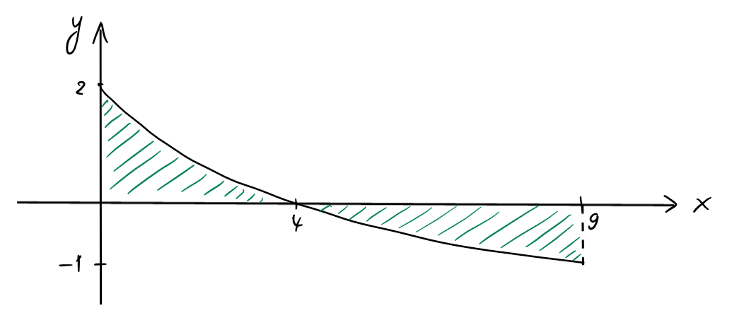 &= \int_0^4 f(x) \ dx + \int_4^9 [-f(x)] \ dx\\
