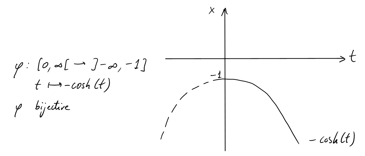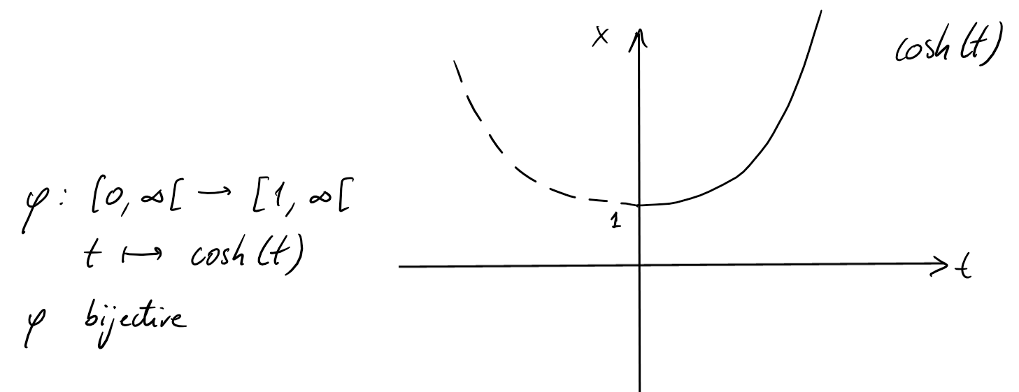 et donc on peut poser \(x=\sinh(t)\), \(t\in \mathbb{R}\). Ainsi,