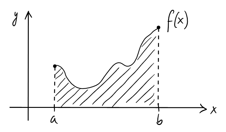l'axe \(Ox\) et le graphe de \(f\), entre \(a=0\) et un point \(b\gt 0\).