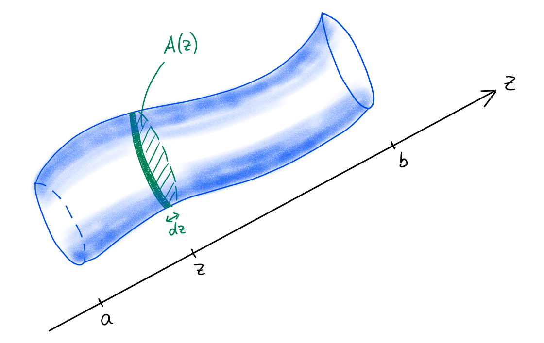 Une tranche infinitésimale d'aire \(A(z)\) et