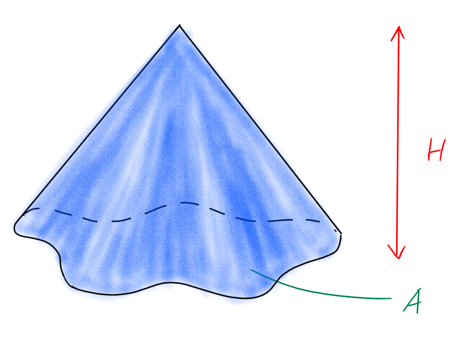 \[V=\frac{1}{3}\cdot A \cdot H\,,\]