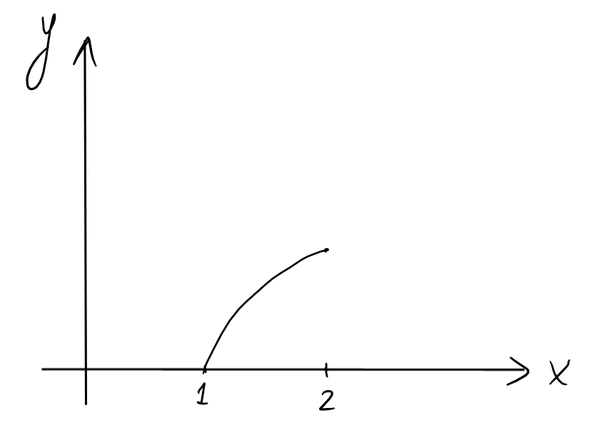 Soit \(f(x)=\sqrt{x-1}\), \(x\in [1,2]\).