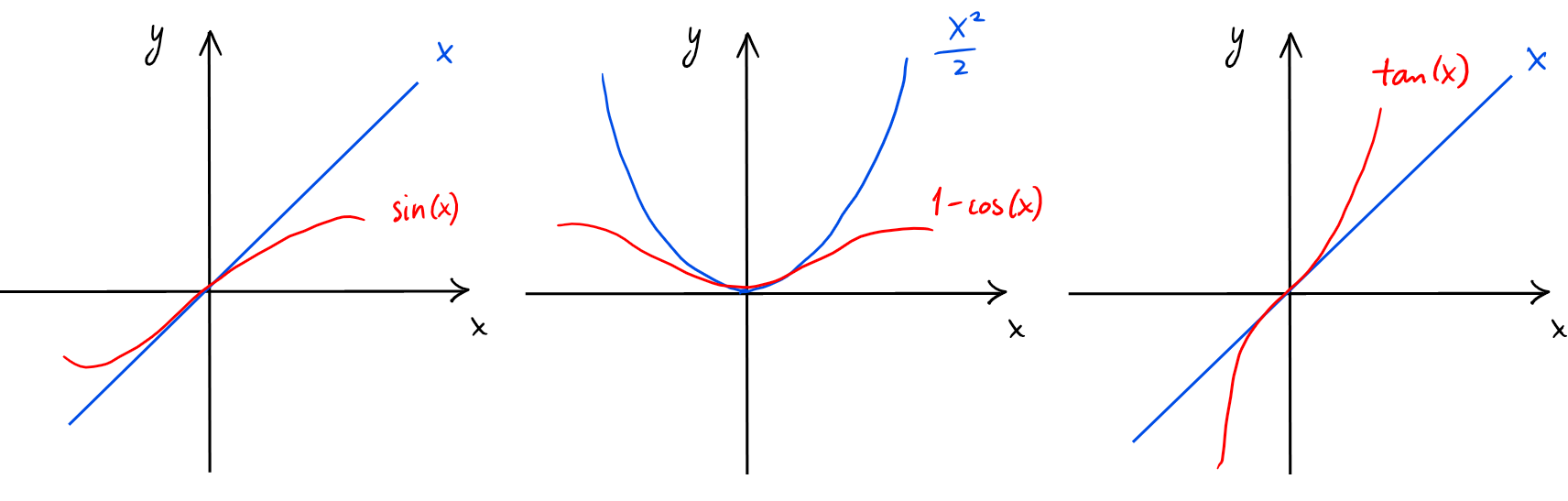 On l'a déjà dit, \(\lim_{x\rightarrow 0} \sin(x)= \lim_{x\rightarrow 0} x=0\).