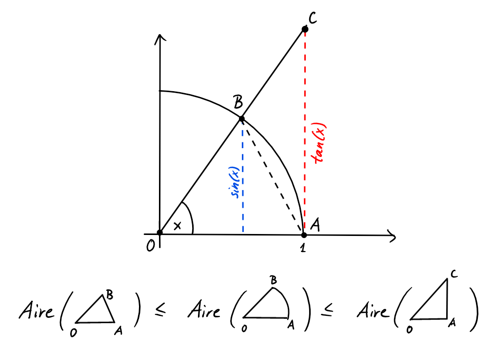 Pour montrer que \(\lim_{x\rightarrow 0} \frac{\sin(x)}{x}=1\), il suffit de