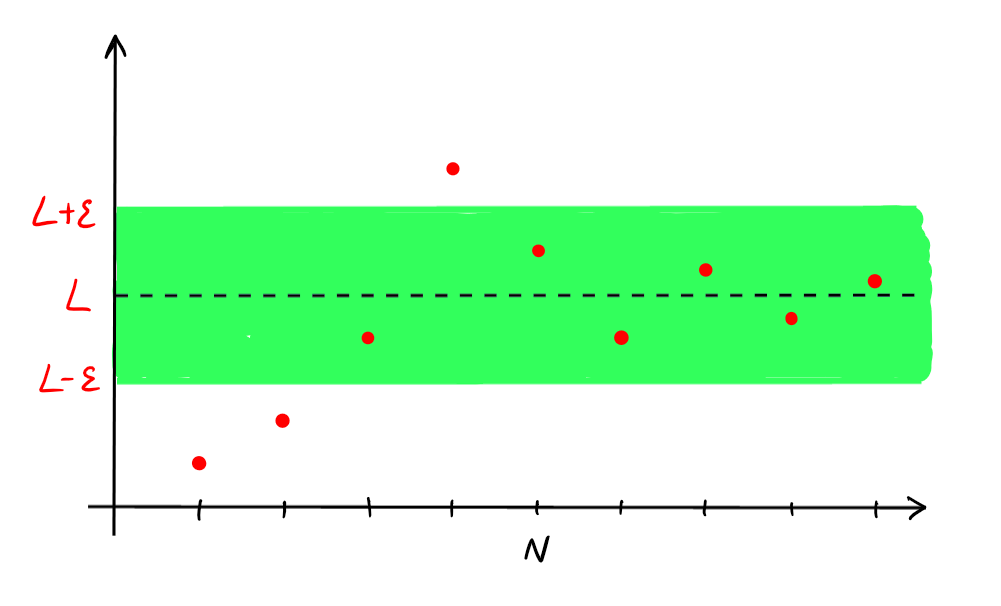 \(|a_n-L|\leqslant \varepsilon\). On écrit \(\lim_{n\rightarrow \infty}a_n=L\) ou