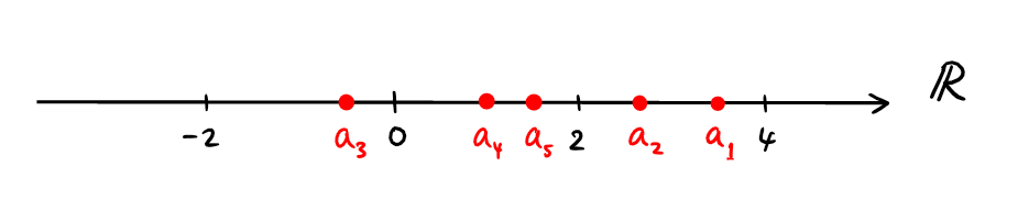 On peut représenter une suite \((a_n)\) sur la droite réelle \(\mathbb{R}\):
