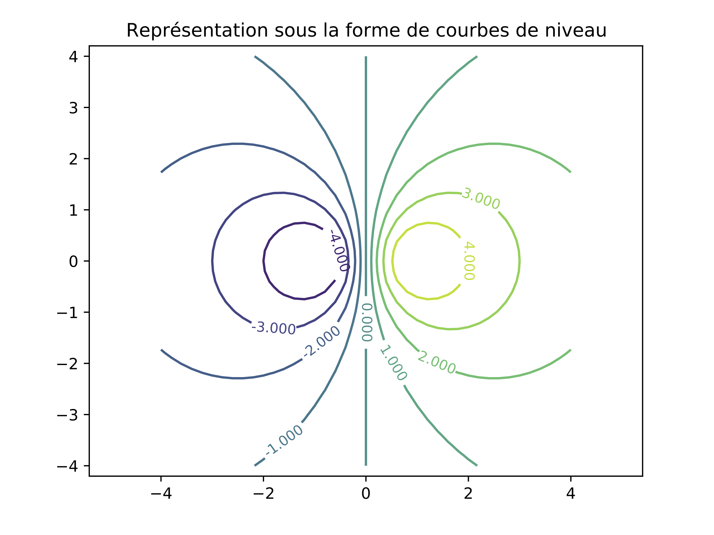 plt.title("Représentation sous la forme de courbes de niveau")