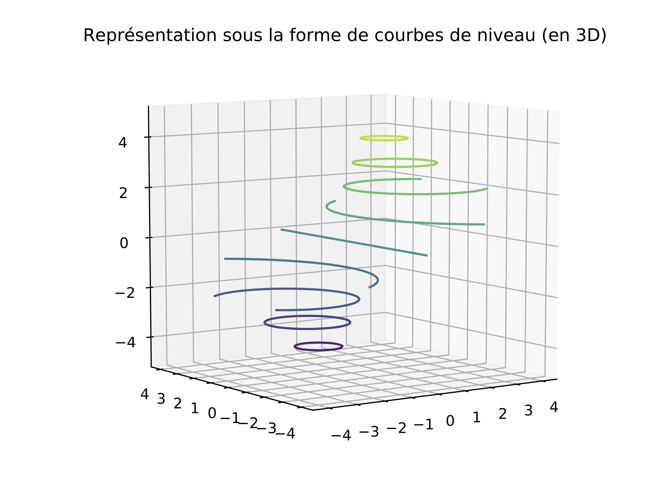 ax.set_title("Representation sous la forme de courbes de niveau (en 3D)")