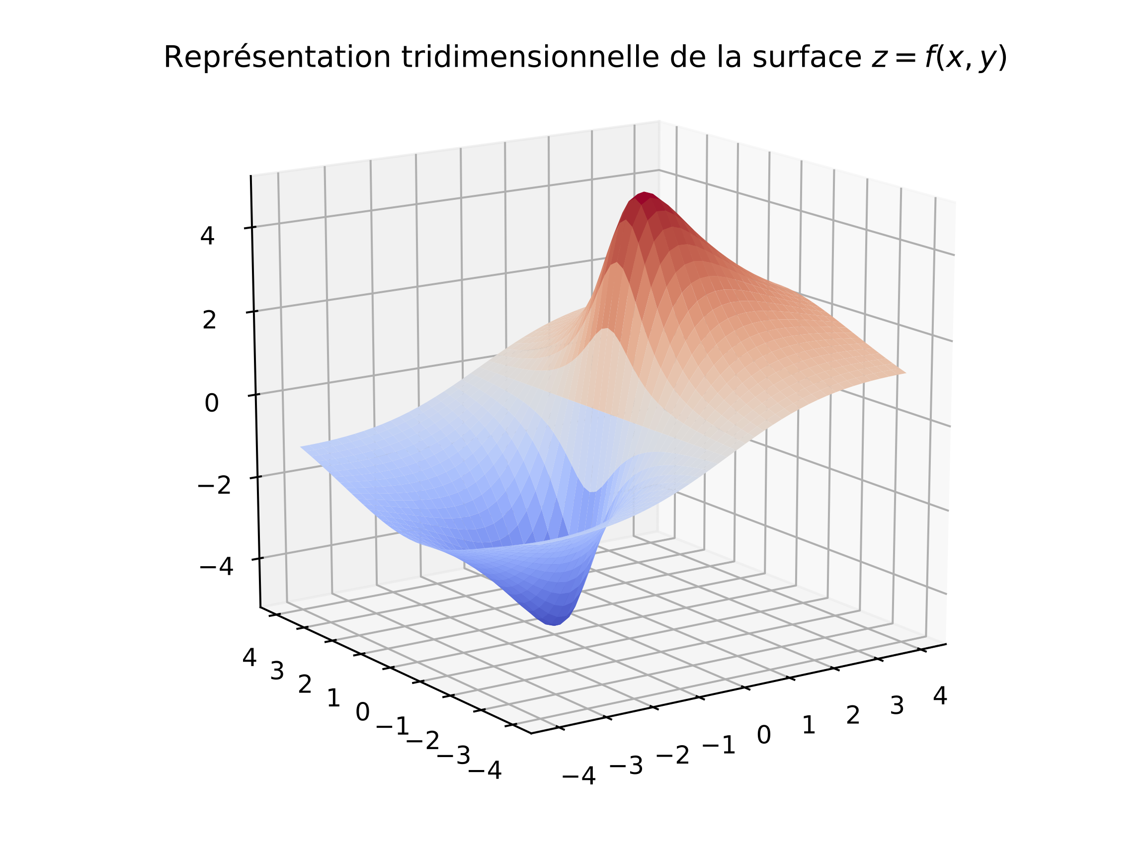 Une fonction scalaire de deux variables \(f(x,y)\), par exemple la température sur une plaque (surface), peut être visualisée :