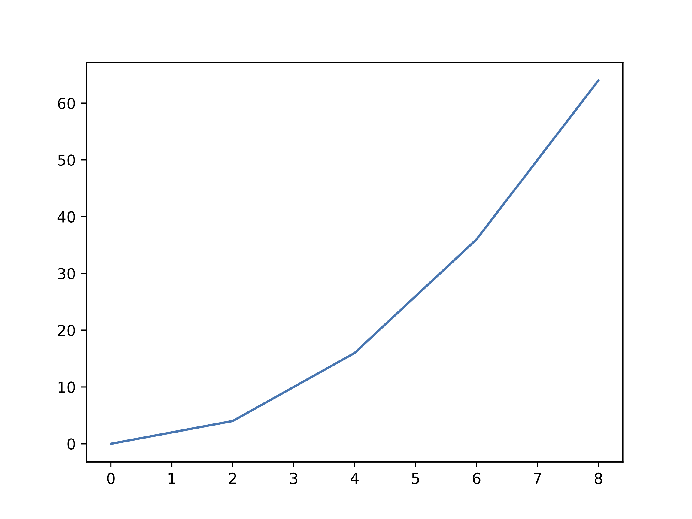 Exemple 3 : représentation de la fonction \( x^2 \) dans l'intervalle \([0,8]\)